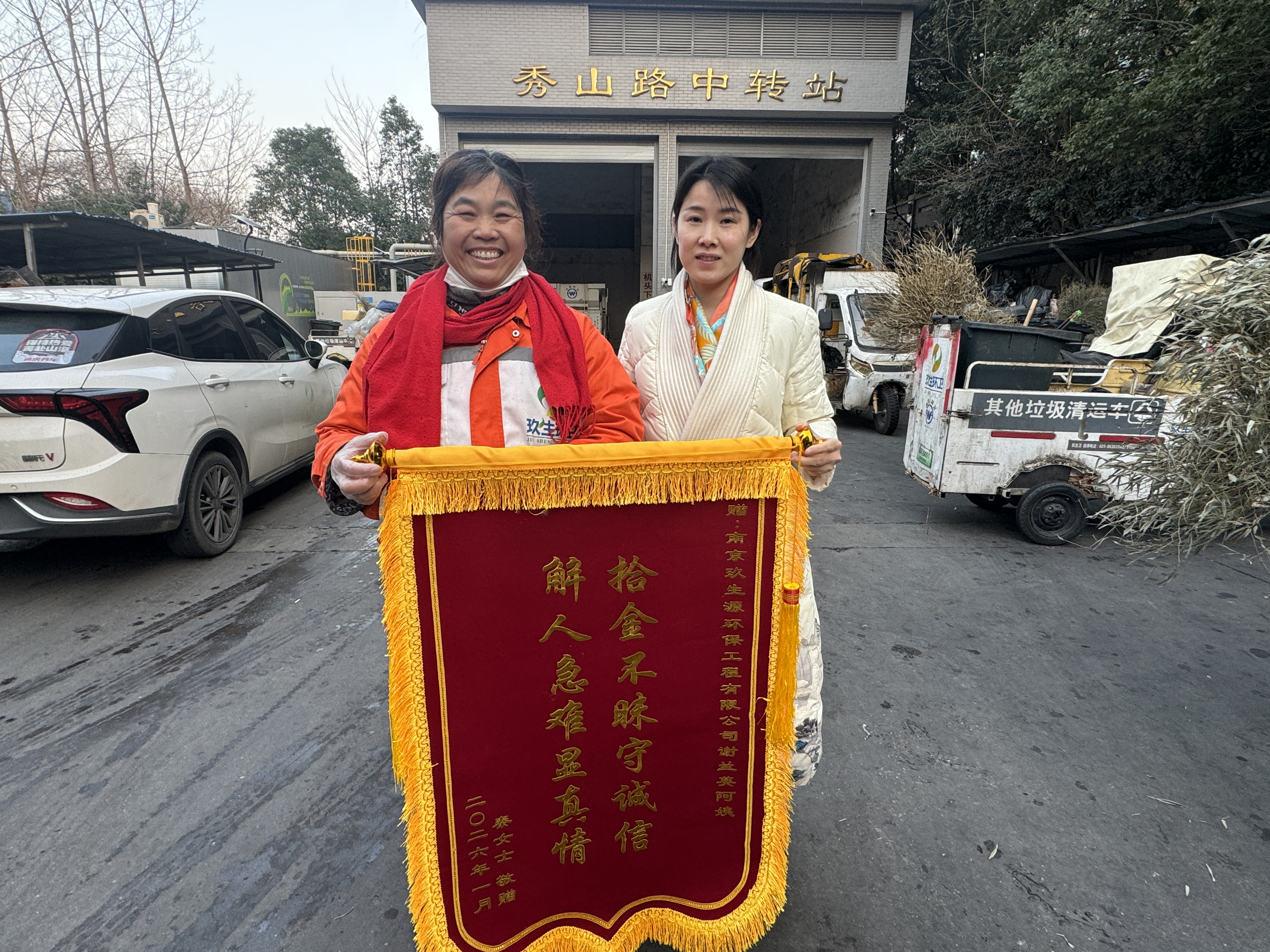 这枚戒指并非普通饰品,而是秦女士专门定制、一生仅有一枚的珍贵物件,对其有着无可替代的情感价值。重获戒指的秦女士激动不已,于1月8日专程来到秀山路中转站,将一面印着“拾金不昧守诚信 解人急难显真情”的锦旗送到谢兰英手中。