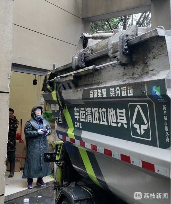 一车装满后,我们跟着谭阿姨,来到建邺区的清荷园厨余垃圾中转站。