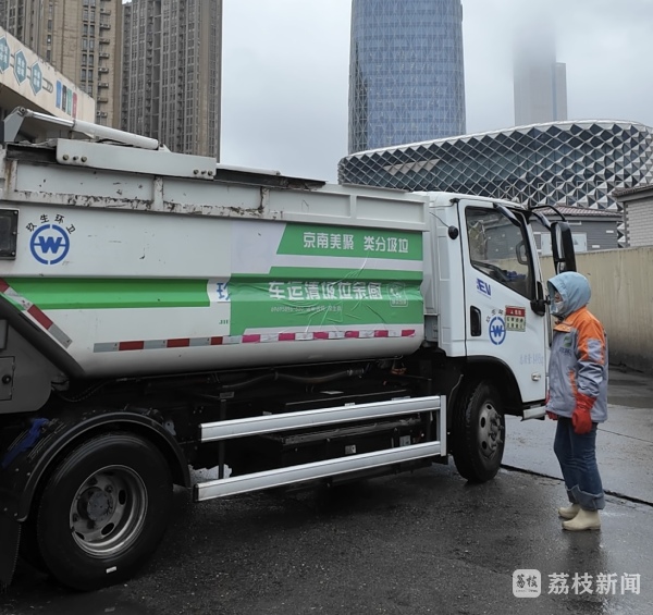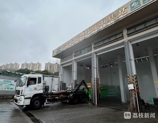 如今,从小区收来的厨余垃圾,在这个中转站短暂“歇脚”,等着被送往最终的处置厂。南京玖生湶环保工程有限公司车队长钱叶飞告诉我们,虽然是中转,但分类的把关并没有停下。小区内都配有专门的分类督导员进行初步分拣;在厨余中转站,垃圾倾倒出来基本没有杂物,即便偶有残留,操作工和收运师傅也会及时清理出来;而到了末端处置厂,生产线上还设有分拣装置。可以说,垃圾分类贯穿了垃圾收运的整个过程。